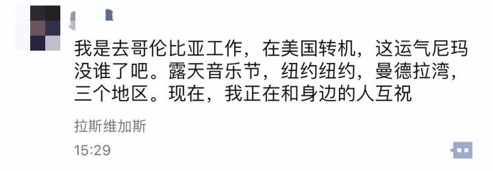 有一名中国来的游客,原本只是在美国转机去哥伦比亚,在拉斯维加斯稍作停留。结果抵达当晚就遇到枪击案。