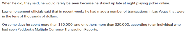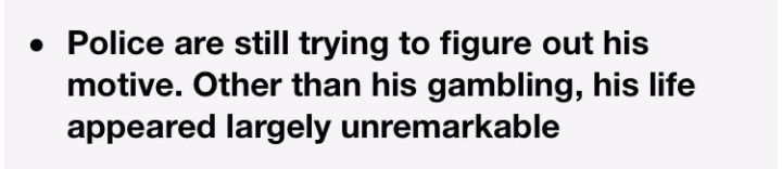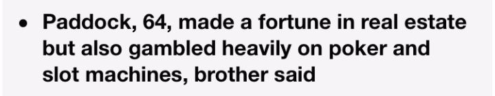 《华盛顿邮报》称,据枪手帕多克的亲戚介绍,他经常去拉斯维加斯赌博丶听音乐会。