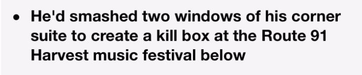 而在惨案发生前,帕多克特意将所住房间窗户砸出两个破洞,以便进行其规划已久的大规模扫射!