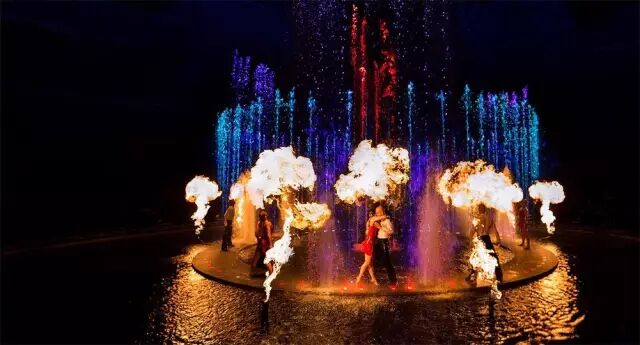 1200个喷嘴和4500盏灯与音乐旋律同步跳跃,几百股水柱一起喷涌,最高达80多米,不愧是花费10亿美金打造的“水上芭蕾”。