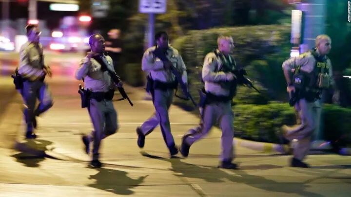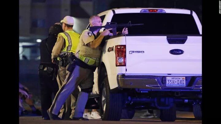 电视画面显示,警车蜂拥而至,警察全副武装,手持突击步枪。拉斯韦加斯机场一度关闭,全部进出港航班暂时停飞。