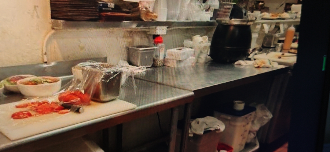 在地中海玛莎餐厅你可以看到蟑螂猖獗地穿过主厨区,可以看到它们在消毒桶和肥皂瓶里肆意繁殖,甚至你可以在洗手池冷水把手、肥皂分配器、墙上和冰勺架后面看到活的虫子。这么多蟑螂的出现离不开餐厅工作人员对餐厅环境卫生的忽视,在这里旧的食物和油脂堆积在设备上,这为臭虫创造了一个诱人的环境。